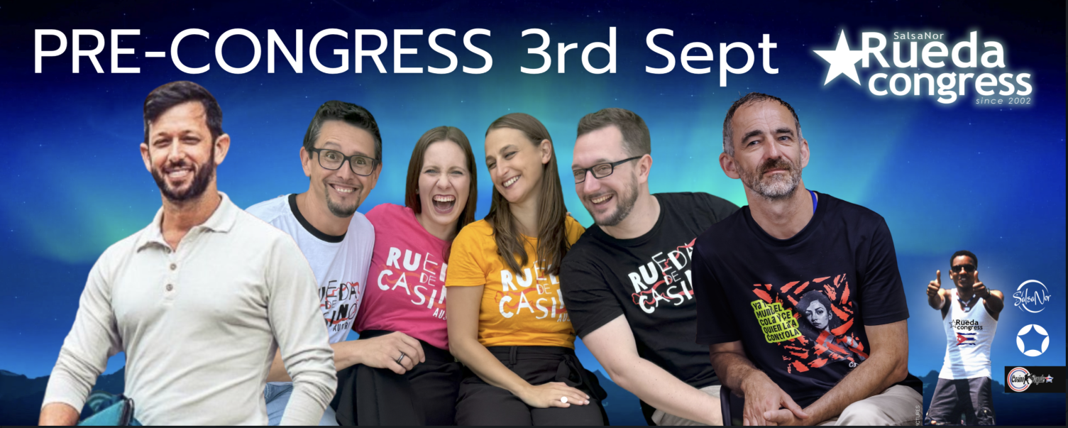 For those who want to make the most out of the event, join also the Pre-Congress Thursday 3rd of September! The 3 hour session with a smaller group going in-depht into some Rueda de Casino topic starts at 1 o’clock in the afternoon (registration from noon). You may sign-up for the pre-congress at the same time as signing up for the Full Pass, or add it later. But remember that there are limited space for this day. Here are some information about the teachers and their exciting topics for the day.