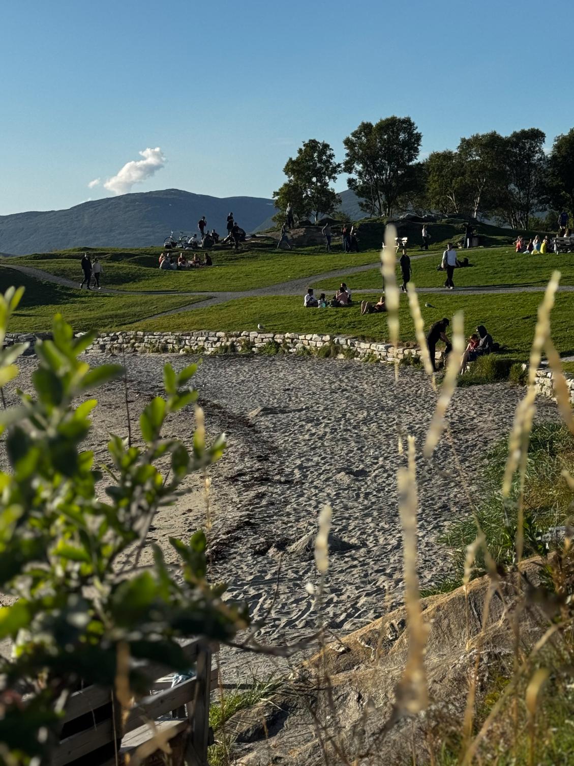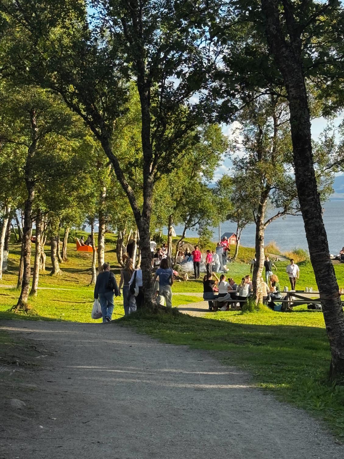 The area blends seamlessly into Sydspissen and the surrounding park areas, with easy walking paths along the shoreline and benches along the way. The terrain is varied but accessible, making it well suited for a casual gathering where people can move around, chat, sit down, or simply enjoy being outside.